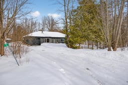 Set on approximately half an acre and surrounded by mature trees this low-maintenance property is designed for relaxed country living. The gravel driveway and thoughtful landscaping complement the peaceful setting, while a circular drive with two entrances makes access easy year-round.